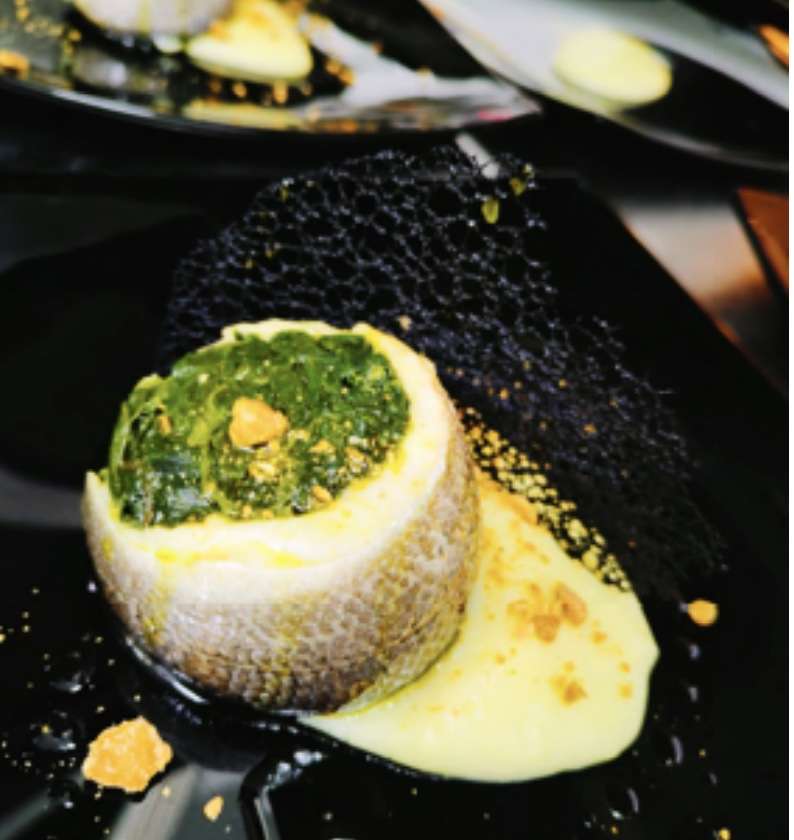 Hunter's style chicken roll / Rotolino di pollo alla cacciatora. Veal involtini stuffed with bread, raisins, pine nuts, and Ragusano provola cheese / Involtino di vitello farcito con pane, uvetta, pinoli e provola Ragusana.
