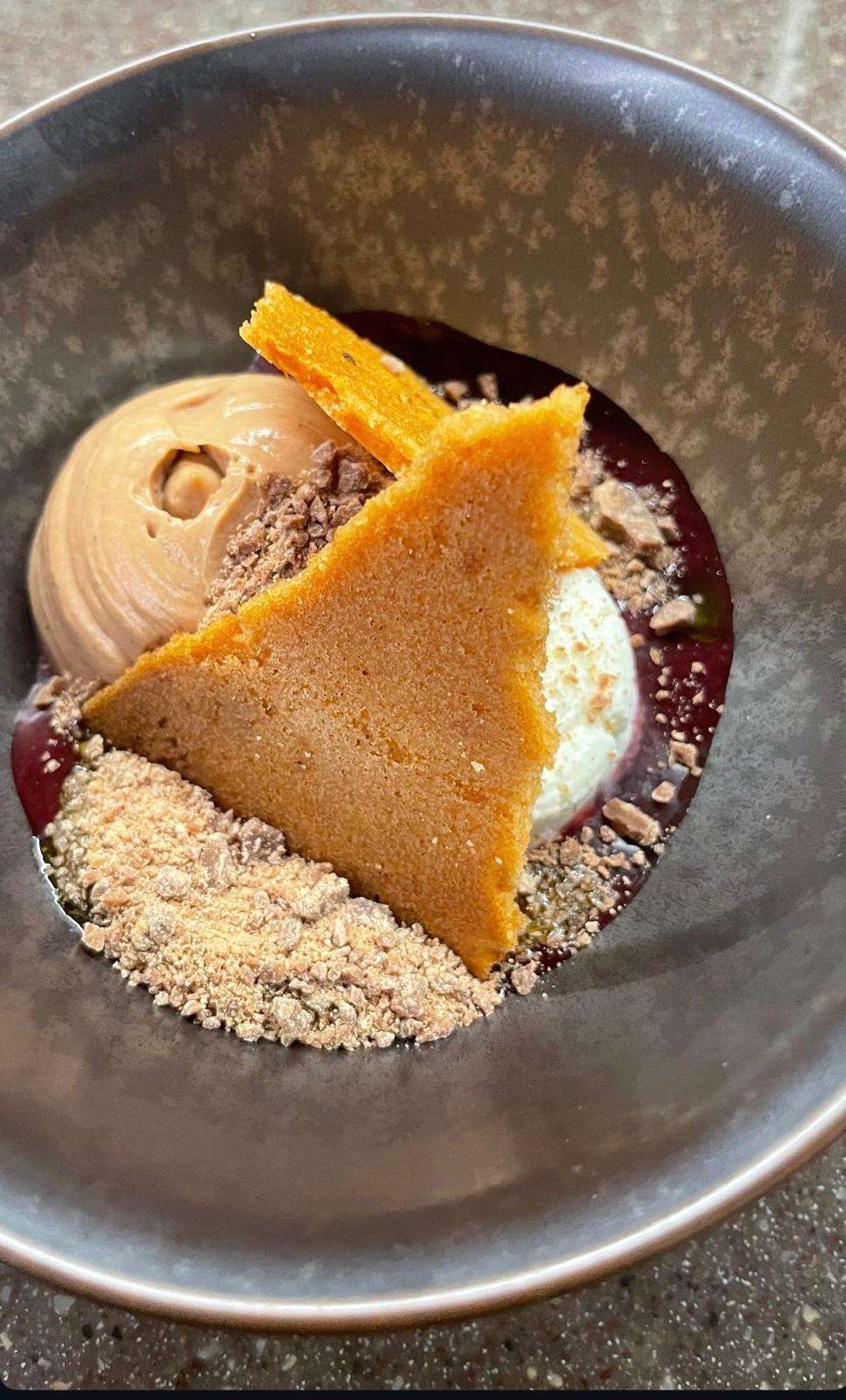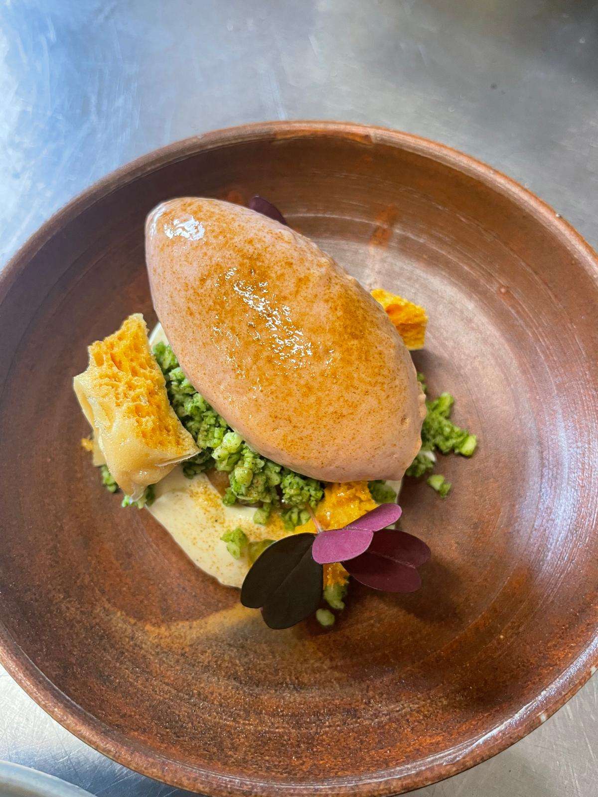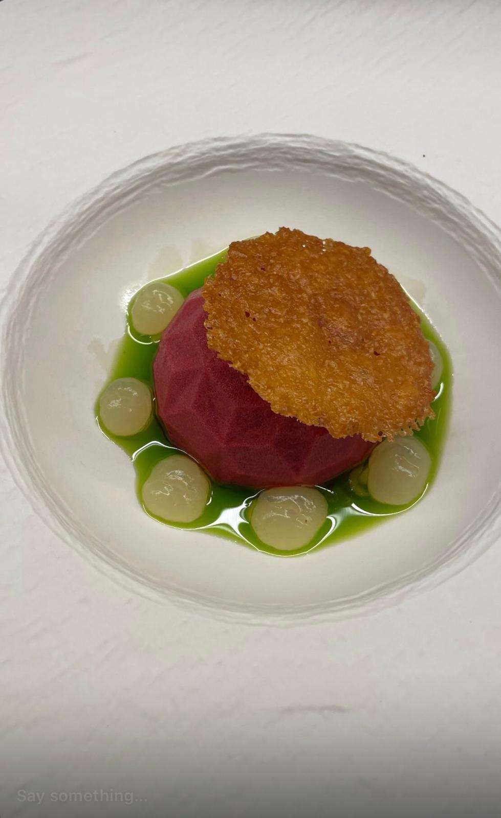 - Dessert: Pistachio crèmeux, raspberry, citrus gel