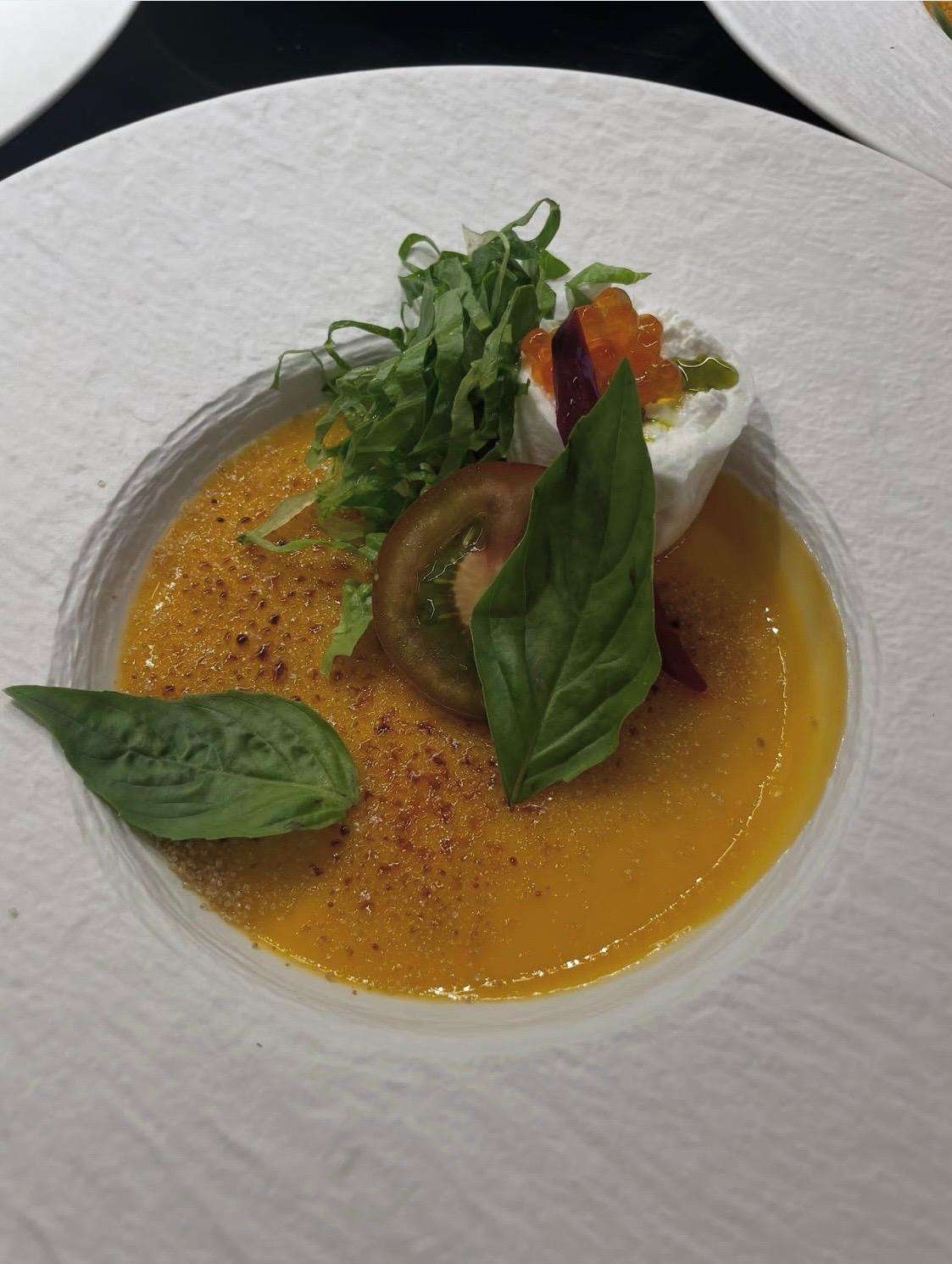 - Amuse: Parmesan crisp with truffle cream