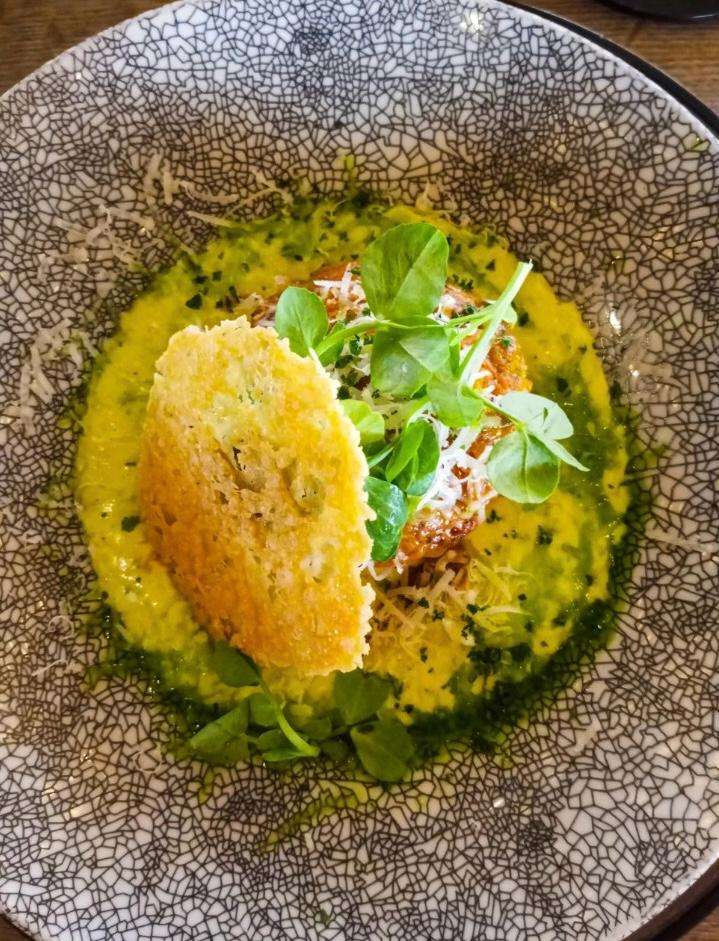 - Fish: Seared scallops, cauliflower, brown butter
