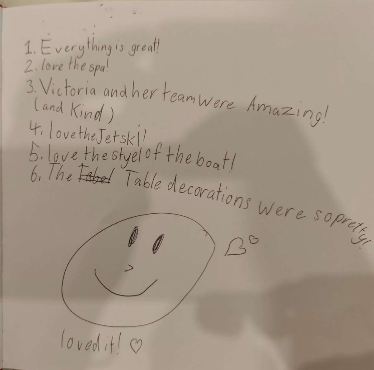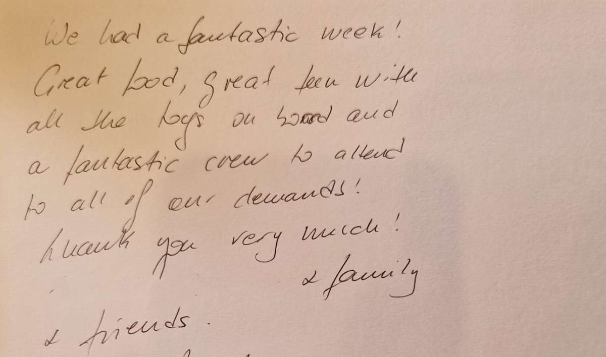Great boat, great team with all the boys on board, and a fantastic crew to attend to all of our demands