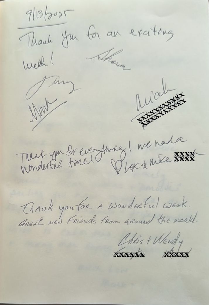 Thank you for a most remarkable trip. You have touched my heart and I will never forget how special you have made this trip. Be happy and have remarkable life.