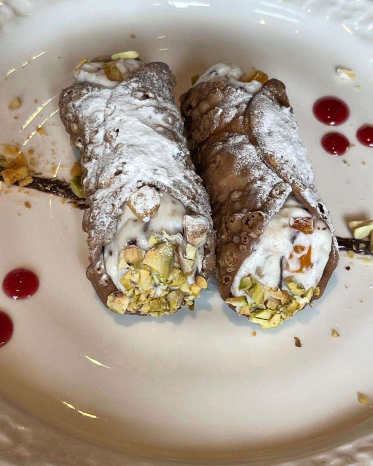 Cannoli filled with ricotta cream, pistachio