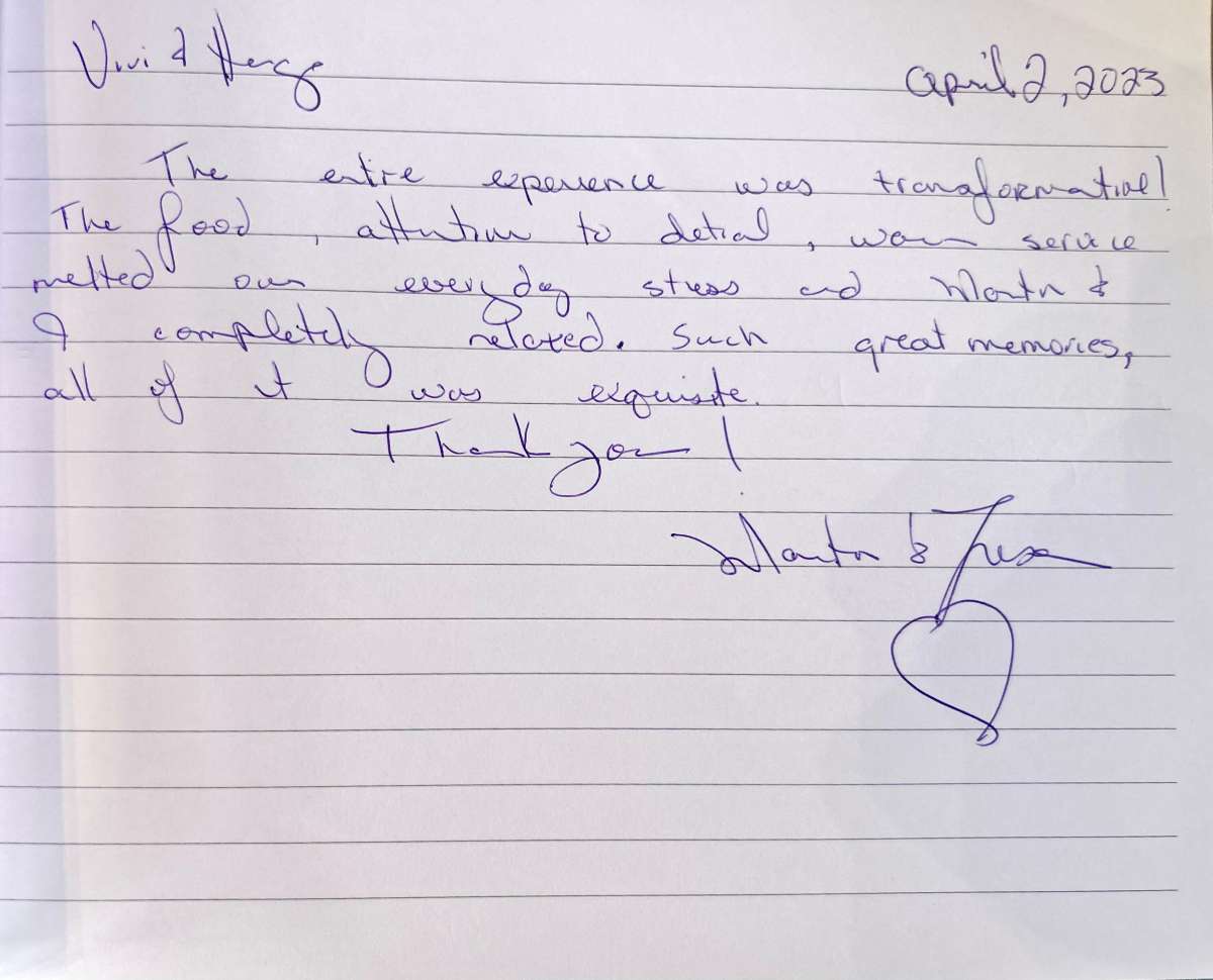 Thanks for an amazing trip, especially the two full days of sailing & the menu created by Vivi!