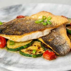 Beef steak with cooked sweet potatoes and Mediterranean herbs